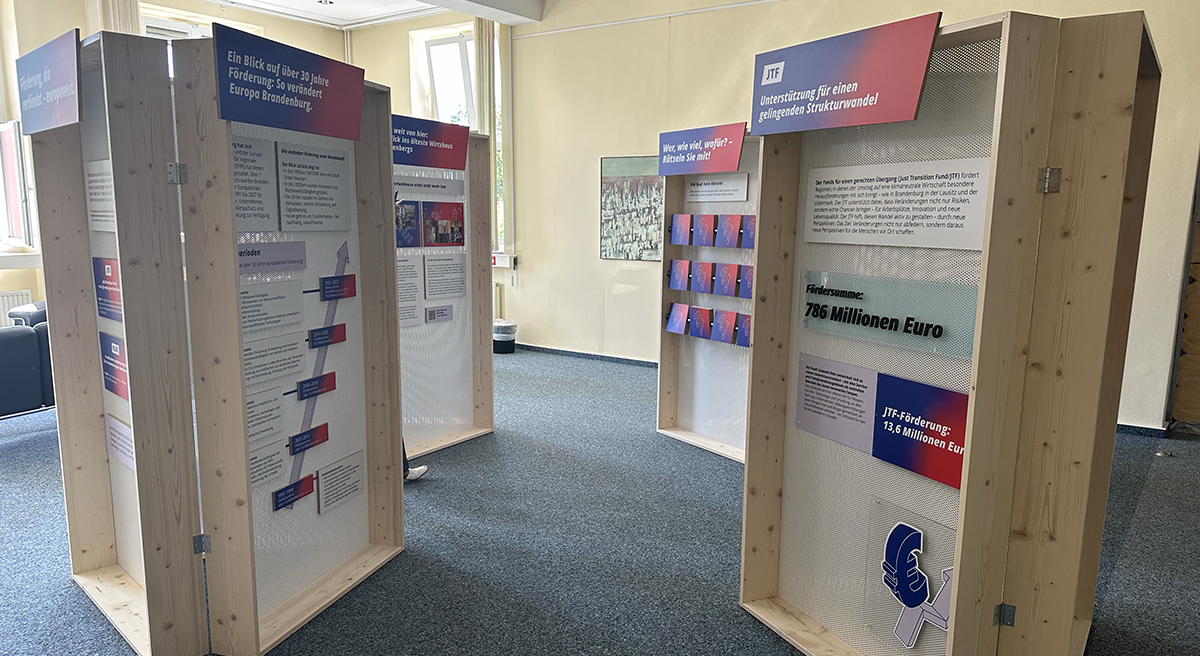 Ein Höhepunkt war die Wanderausstellung zu EU-Förderung, die in Senftenberg startete und bis 2029 durch 18 Orte in Brandenburg tourt. Sie macht sichtbar, wie die Fonds nachhaltige Entwicklung, wirtschaftliche Stärke und Innovation fördern – etwa am Beispiel des Gasthauses „Das Hubertus“, das dank des Fonds für einen gerechten Übergang wieder zum lebendigen Treffpunkt wurde.